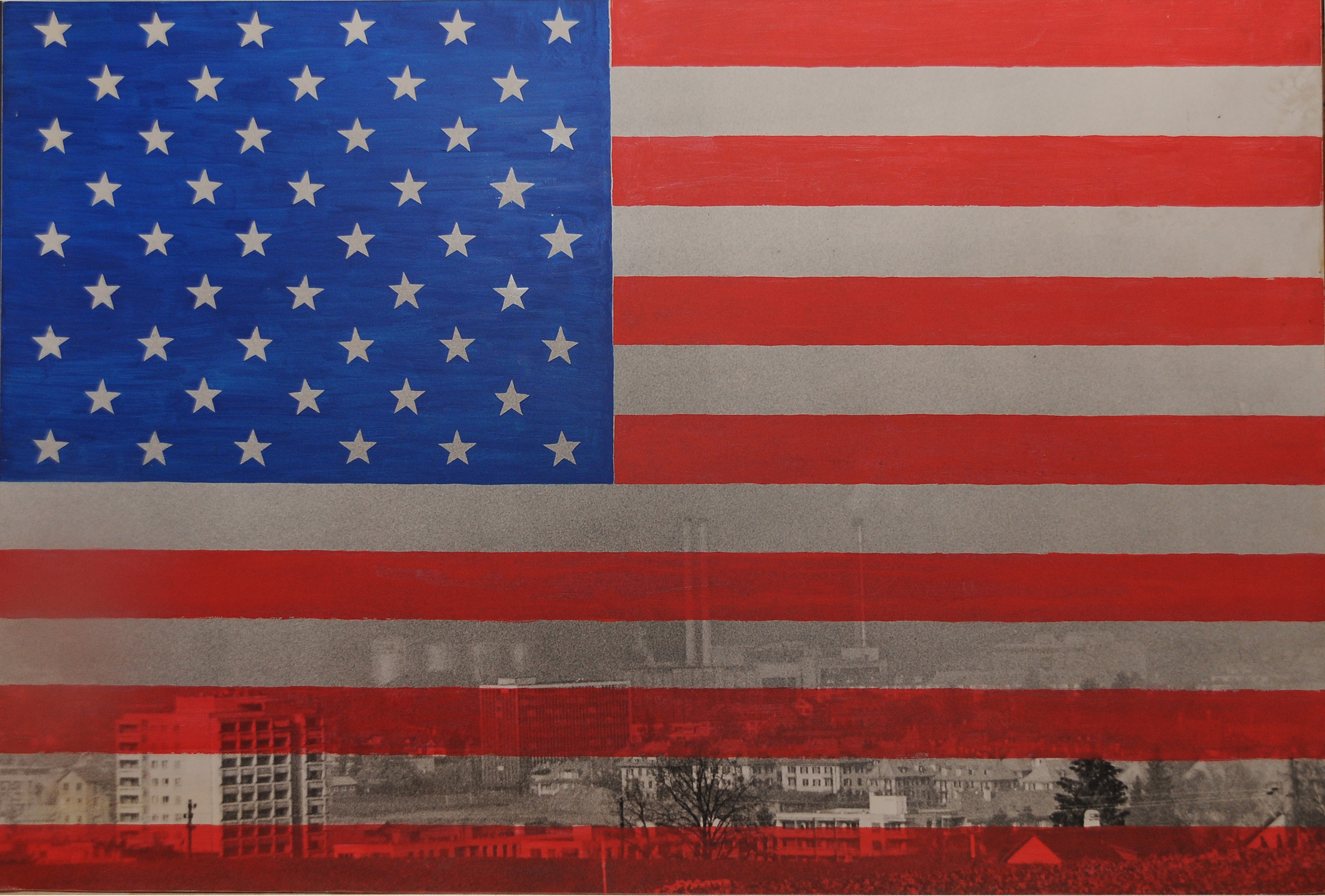 Die US-Flagge wurde schon oft in der Kunst, vor allem beim Pop Art, eingesetzt. Trotzdem oder vielleicht deshalb wurde für mich die US Fahne zur Inspirationsquelle.