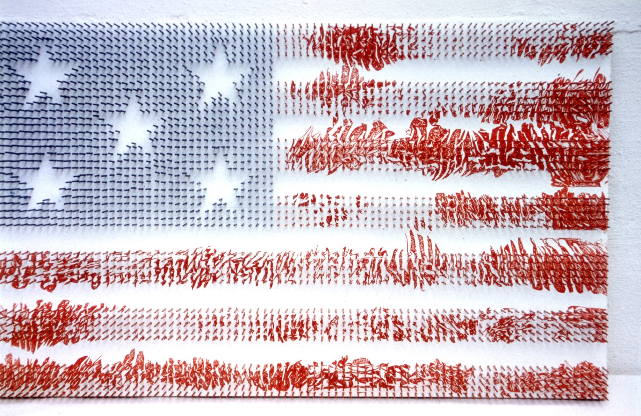 Die US-Flagge wurde schon oft in der Kunst, vor allem beim Pop Art, eingesetzt. Trotzdem oder vielleicht deshalb wurde für mich die US Fahne zur Inspirationsquelle.